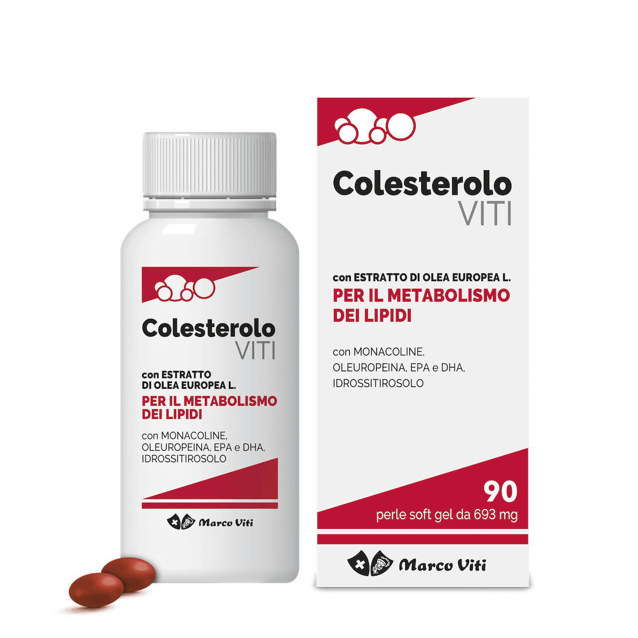 Colesterolo Viti è un integratore alimentare a base di estratto di Olivo (Olea europea L.), che supporta il metabolismo dei lipidi. Contiene Monacoline, Oleuropeina, EPA e DHA, Idrossitirosolo.